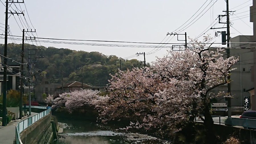 逗子の中央を流れる田越川は桜の名所の一つです。朱塗りの仲町橋付近は春には桜が咲き誇り、夏は柳の落ち着いた逗子の風情がありました。朱色の仲町橋に「田越川の桜」が映えます。